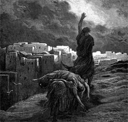 "Und du wirst bestimmt bei Tag straucheln, und auch ein Prophet soll mit dir straucheln wie bei Nacht. Und ich will deine Mutter zum Schweigen bringen. Mein Volk wird gewiss zum Schweigen gebracht werden …"