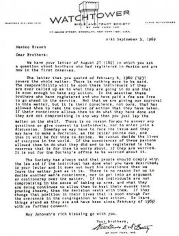 In den 1970er Jahren besuchten meine Frau und ich einen internationalen Kongress in Mexico City, und wir wurden im Zweigbüro der Gesellschaft untergebracht. Präsident Knorr war ebenfalls anwesend und machte mit uns und weiteren Besuchern eine Führung durch die verschiedenen Gebäude, die zum Zweigbüro Mexiko gehörten. Während dieser Führung sprach er den rechtlichen Status einer "kulturellen Organisation" in Mexiko direkt an und erwähnte ausdrücklich, ein Hauptgrund für diesen ungewöhnlichen Status liege darin, dass er es der Organisation ermögliche, die volle Verfügungsgewalt über ihr Eigentum im Land zu behalten. [341]