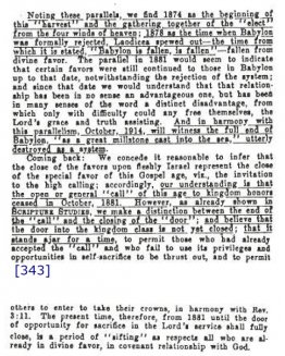 "Die Bibelforscher – seit 1931 auch unter dem Namen Jehovas Zeugen bekannt – versprachen sich zudem von dem Jahr 1925 die Erfüllung großartiger biblischer Prophezeiungen. Sie vermuteten, zu jener Zeit würde die irdische Auferstehung beginnen, und treue Männer der alten Zeit wie Abraham, David und Daniel würden zurückkehren. Was die neuere Zeit angeht, so mutmaßten viele Zeugen, dass die mit dem Anfang der Millenniumsherrschaft Christi verbundenen Ereignisse eventuell von 1975 an eintreten würden. Sie dachten, dass in jenem Jahr das siebte Jahrtausend der Menschheitsgeschichte anbreche."