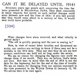 In den Veröffentlichungen der Wachtturm-Organisation werden weiterhin unermüdlich Behauptungen über das Jahr 1914 aufgestellt. Ist erst einmal das Jahr 2000 gekommen und man liest und schreibt diese Jahreszahl, danach 2001, 2002 und so weiter, wird allein schon der optische Eindruck das Jahr 1914 immer unhaltbarer machen. Früher oder später wird sich die Organisation dann wohl einfach gezwungen sehen, irgendein "neues Verständnis" vorzutragen.