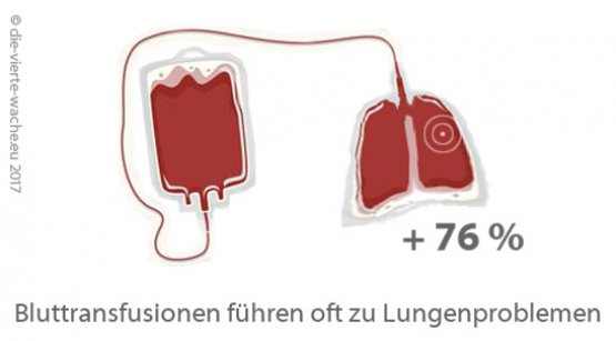 Transfusion-related acute lung injury; clinical perspectives. – Akute Komplikationen sind nicht so häufig. Wenn sie sich einstellen, dann wird in erster Linie die Lunge in Mitleidenschaft gezogen. Lungenentzündung, Lungenödeme etc. stehen hier im Vordergrund. Diese Lungenprobleme stellen den höchsten Anteil bei der Sterblichkeit aufgrund transfusionsbedingter Komplikationen dar. (Diese Studie wird nicht in der ARD-Doku erwähnt.)