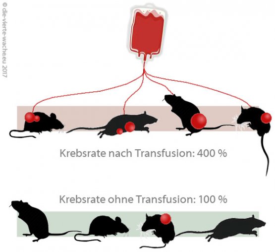 Das Deutsche Krebsforschungszentrum Heidelberg gibt an, dass es „keine interessante Fragestellung“ ist, dass man „das Thema nochmal überdenken“ soll und „nicht unnötig Panik schüren“ sollte. Interessant, diese Heidelberger Krebsexperten – da werden zig Studien gemacht, die eine krebsfördernde Wirkung von Bluttransfusionen zeigen und in Heidelberg geht man hin und überdenkt, schürt keine Panik und interessiert sich nicht für krebsmedizinische Fragestellungen dieser Art. Krebsforscher, die sich nicht für Krebs interessieren, der Gipfel der Überheblichkeit seitens der Schulmedizin, die tatsächliche Wirkungen und Fakten nicht zur Kenntnis nimmt.