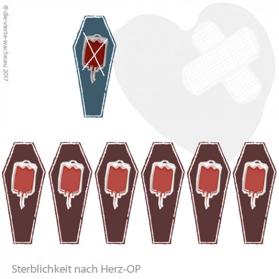 Nach Herzoperationen, bei denen eine oder mehrere Bluttransfusionen gegeben wurden, war das Sterberisiko 6-mal höher als bei Patienten ohne Transfusionen (Many blood transfusions may increase risks, doctors warn).