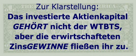 Sind das also "Wachtturm-Aktien"? Nein, der Geldtopf gehört sozusagen sich selbst und wird jedes Jahr neu in Aktien investiert. Aber die Gewinne des Geldtopfes gehen an die Wachtturm-Gesellschaft und werden von ihr angenommen.
